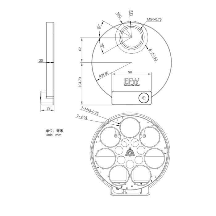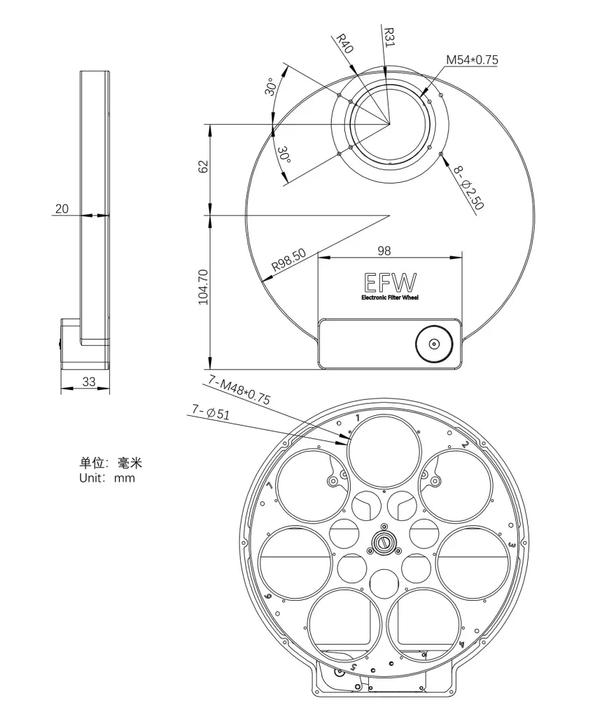 The 2” Electronic Filter Wheel can be rotated in both counter clockwise and clockwise direction for filter selection.