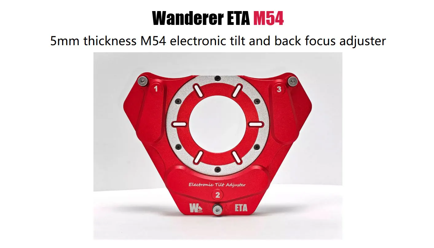 Wanderer ETA M54 (Electronic Tilt Adjuster) is an innovative electronic tilt and back focus adjuster that allows users to precisely, quickly, and remotely adjust the camera's tilt and back focus.