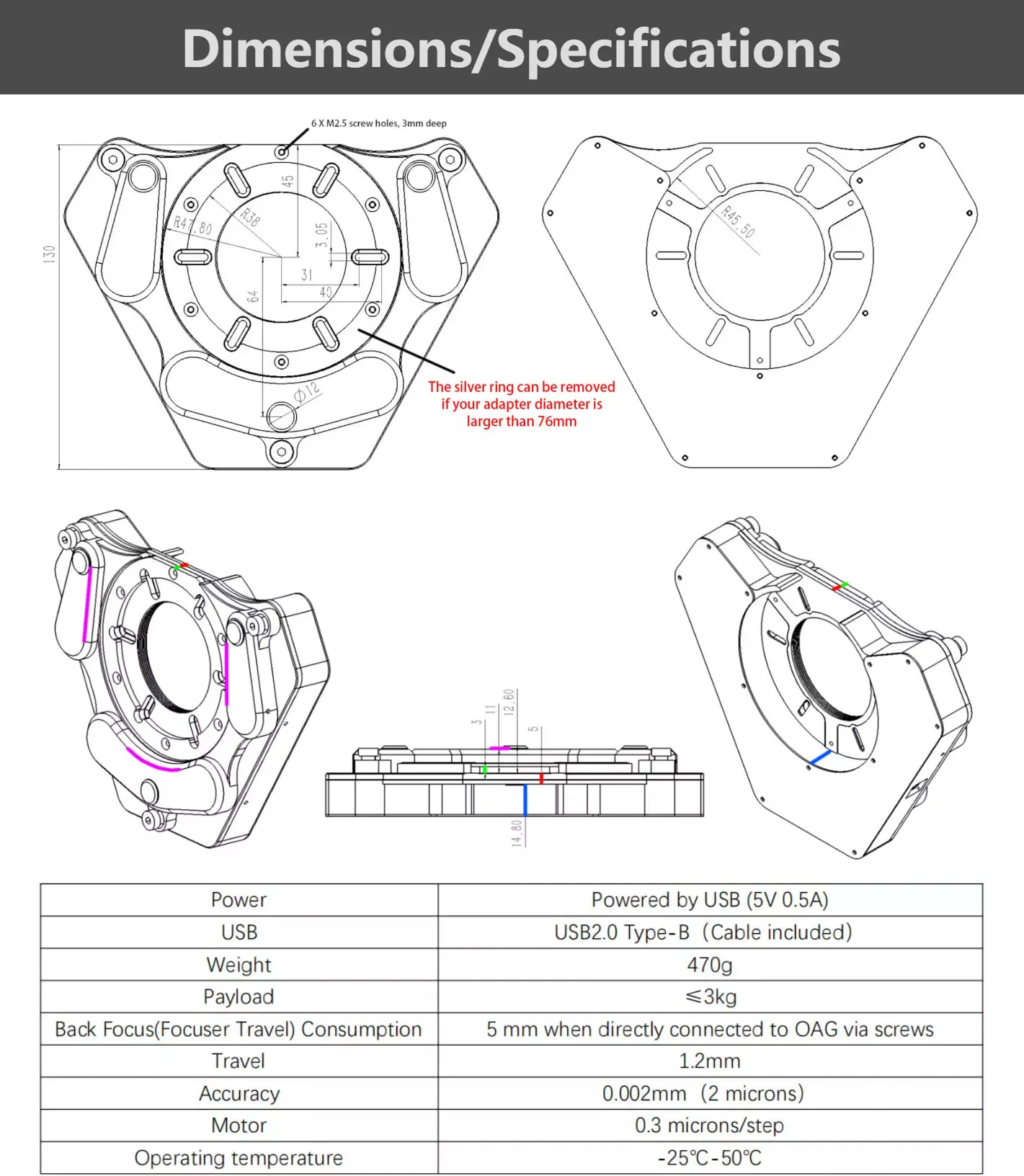 Back Focus for Calculation: 5mm (when connected to OAG/camera with screws)
