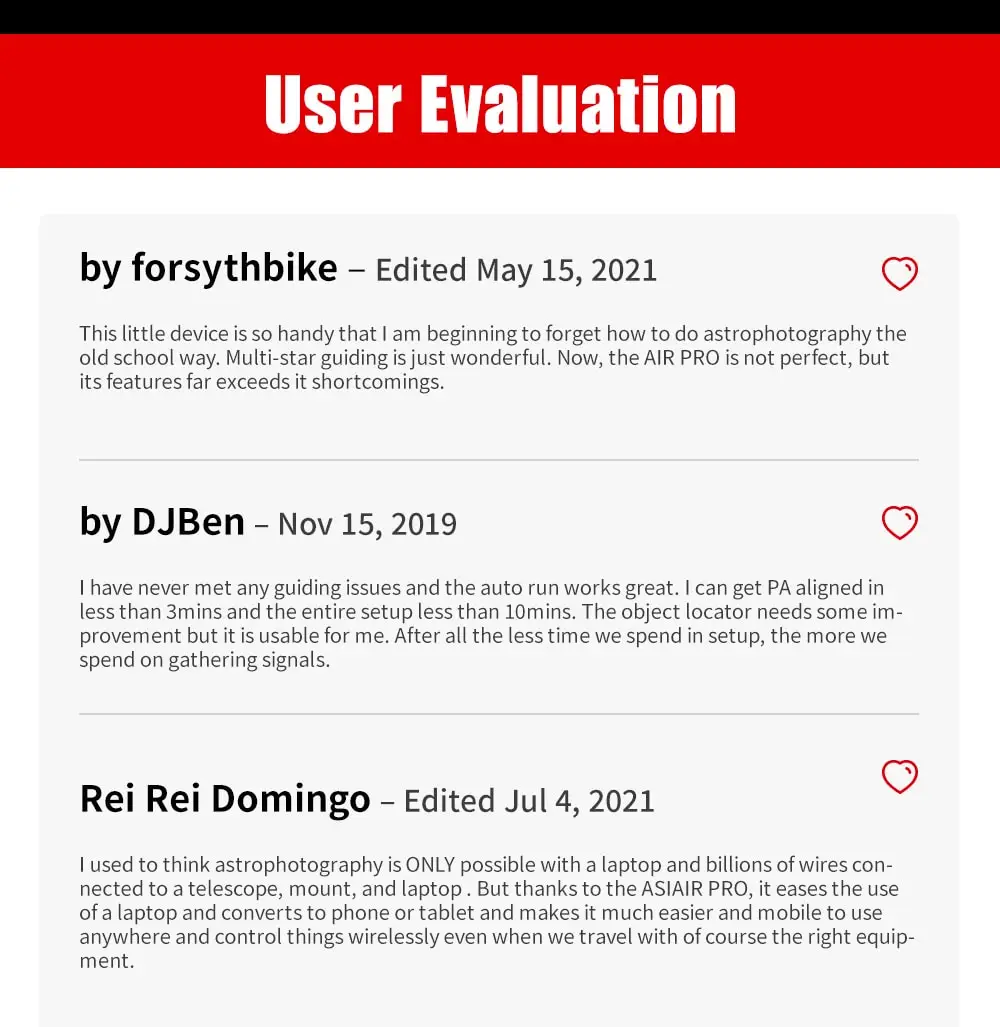 Our website has newest camera drivers and many DSO and Planetary capture softwares. Please make sure the newest driver and software has been installed before you start shooting: