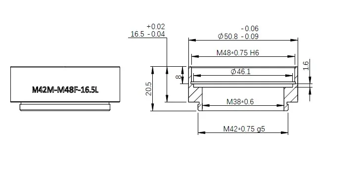 ZWO M42 (T/T2) to M48 Extender / 2" Prime Focus Adapter with 16.5mm Extension # T2-M48-16.5