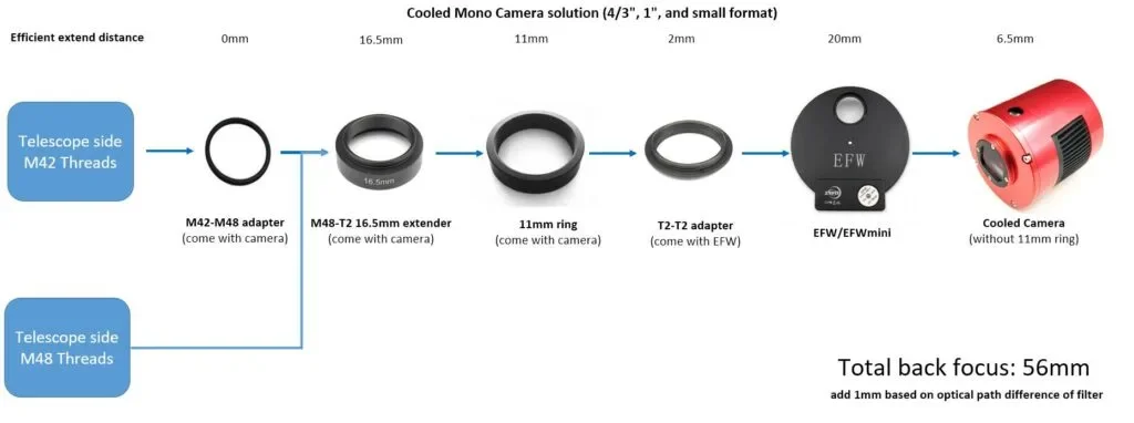 The M48-M42 adapter is used in order to fit your imaging train together with different types of equipment and sizes. See below for examples of use.