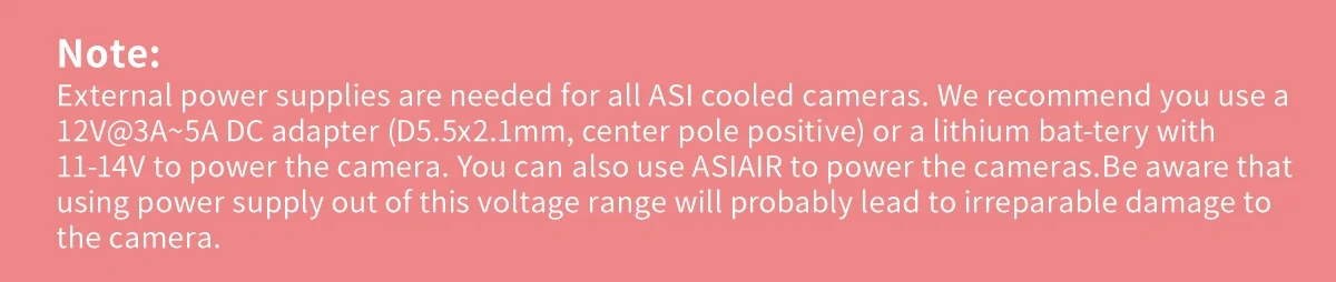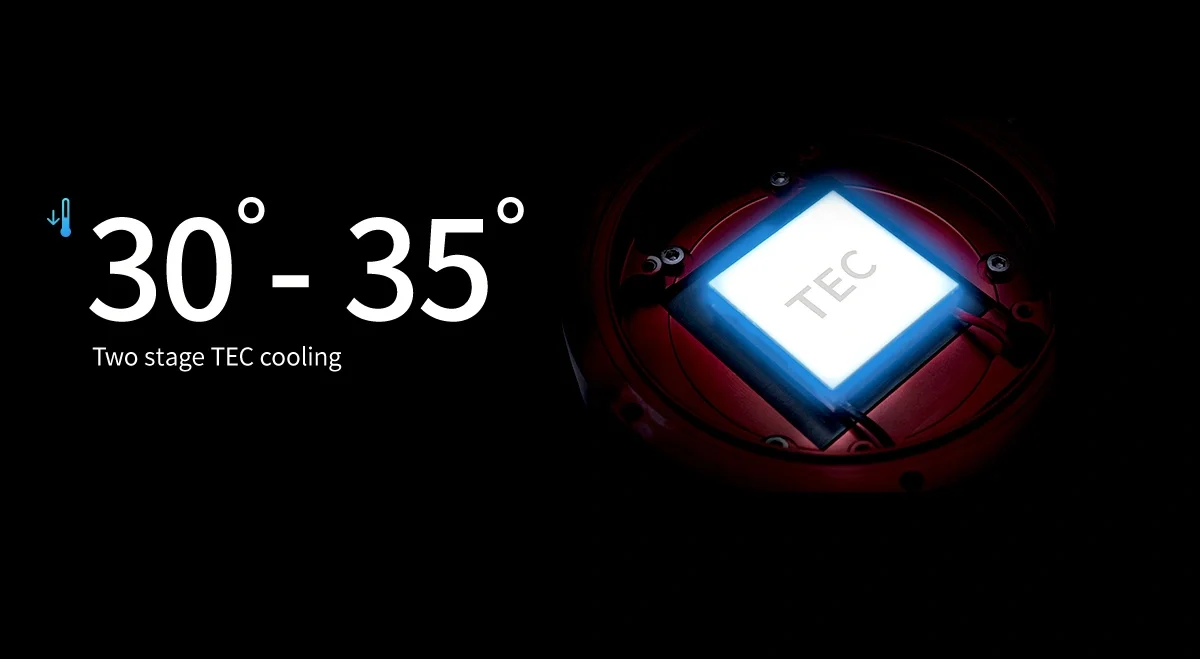Thanks to the two-stage TEC cooling, ASI2600MC/MM Duo can lower the CMOS sensor temperature to more than 30-35 degrees Celsius below ambient temperature, which can greatly reduce dark current generation and sensor noise even during extended exposure times.