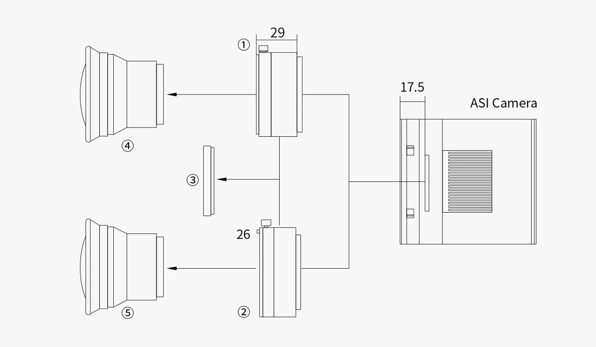 Thanks to the compact design, the ASI2600MC/MM Duo only needs one USB cable for control. It reduces potential cabling issues and improves setup speeds. You don’t need a separate OAG and guide camera.