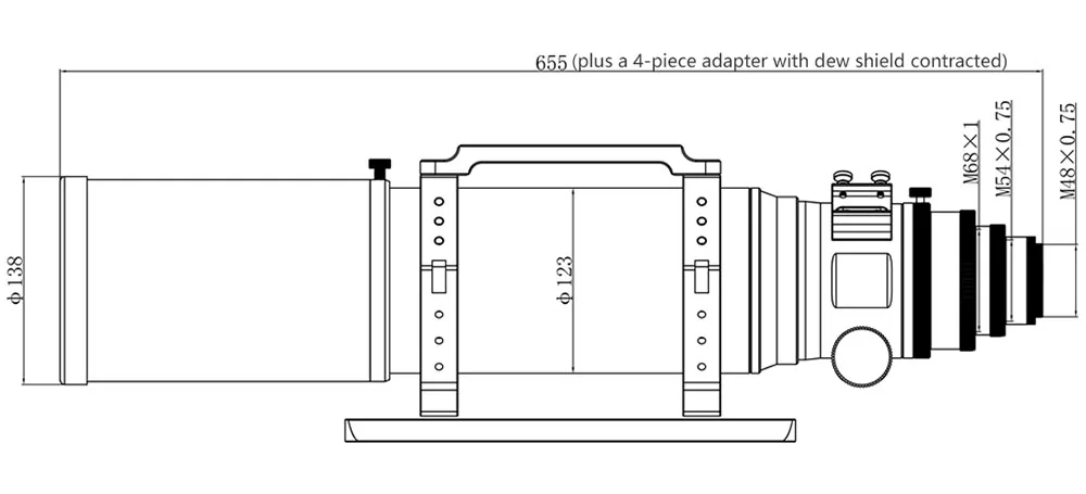 Objective lens:Quadruplet air-spaced APO (including two ED glass)