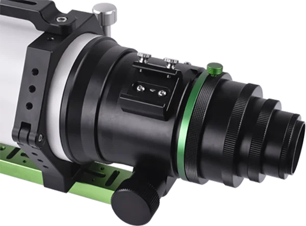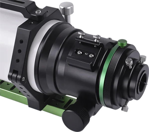 The sleek 107PHQ is assembled with high-quality CNC-machined components and wrapped with smooth coating. The calm and seriousness is offset by the bright green decorative rings or knobs. The 3.4" rigid focuser is capable of handling a load of 8kg. It’s designed with a long travel distance of 95mm, which is suitable for visual observation. And it’s been optimized especially for astrophotography.