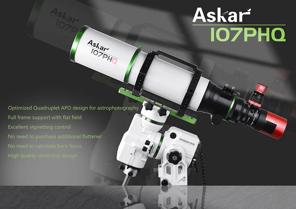 As the first long-focal-ratio Flatfield astrograph from Askar, 107PHQ is born with a special mission: whether you are just getting started in astrophotography,